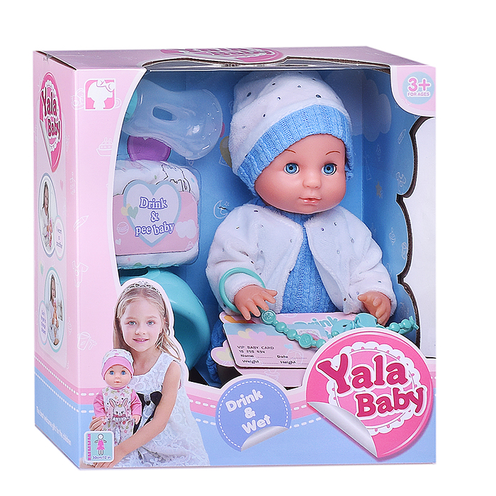 • В комплекте: бутылочка, горшок, соска, памперс.