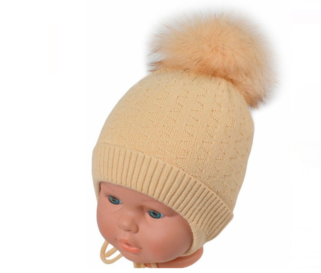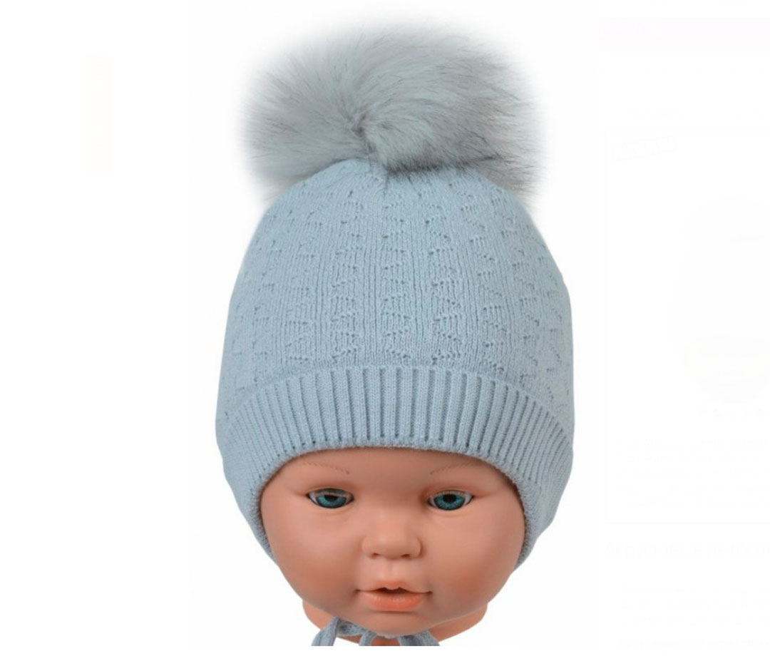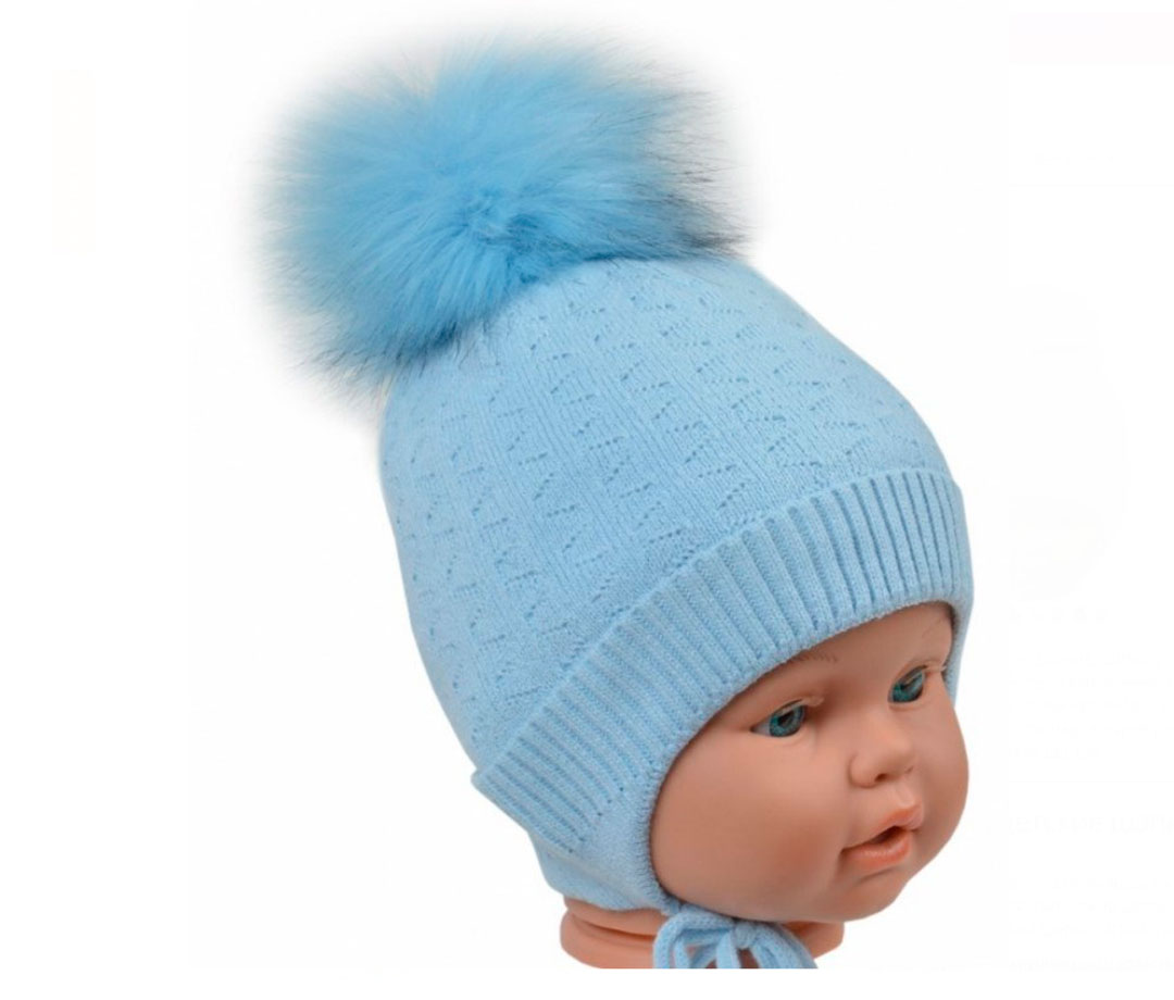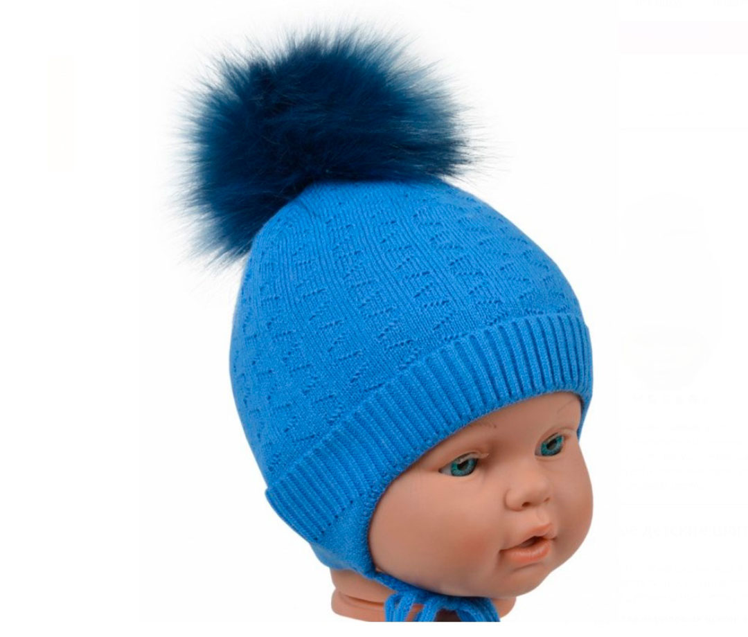 Модель из акриловой пряжи и на меховом подкладе. Облегающая осенне-зимняя шапка для детей от 0 до года, поможет уберечь детские ушки от ветра и непогоды. Шапочка выполнена в технике плотной машинной вязки. Модель украшает повторяющийся ажурный вертикальный узор «змейка». Шапочка дополнена пушистым аксессуаром помпоном, широкая резинка переходит в расширение для ушек. Завязки у шапочки крепкие, но мягкие, что не позволяет головному убору сползать вовремя прогулки и в тоже время не травмирует нежную кожу малыша.