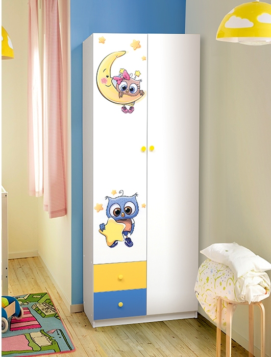 Корпус - высококачественная ЛДСП белого цвета с фотопечатью. Края обработаны кантом и кромкой ПВХ. Внизу два выдвижных ящика.