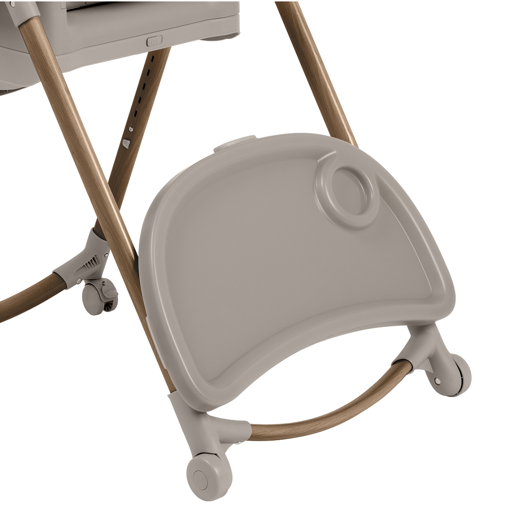 Благодаря вращающемуся подносу, который можно поворачивать одной рукой, ребёнку будет проще садиться в кресло и вставать из него.