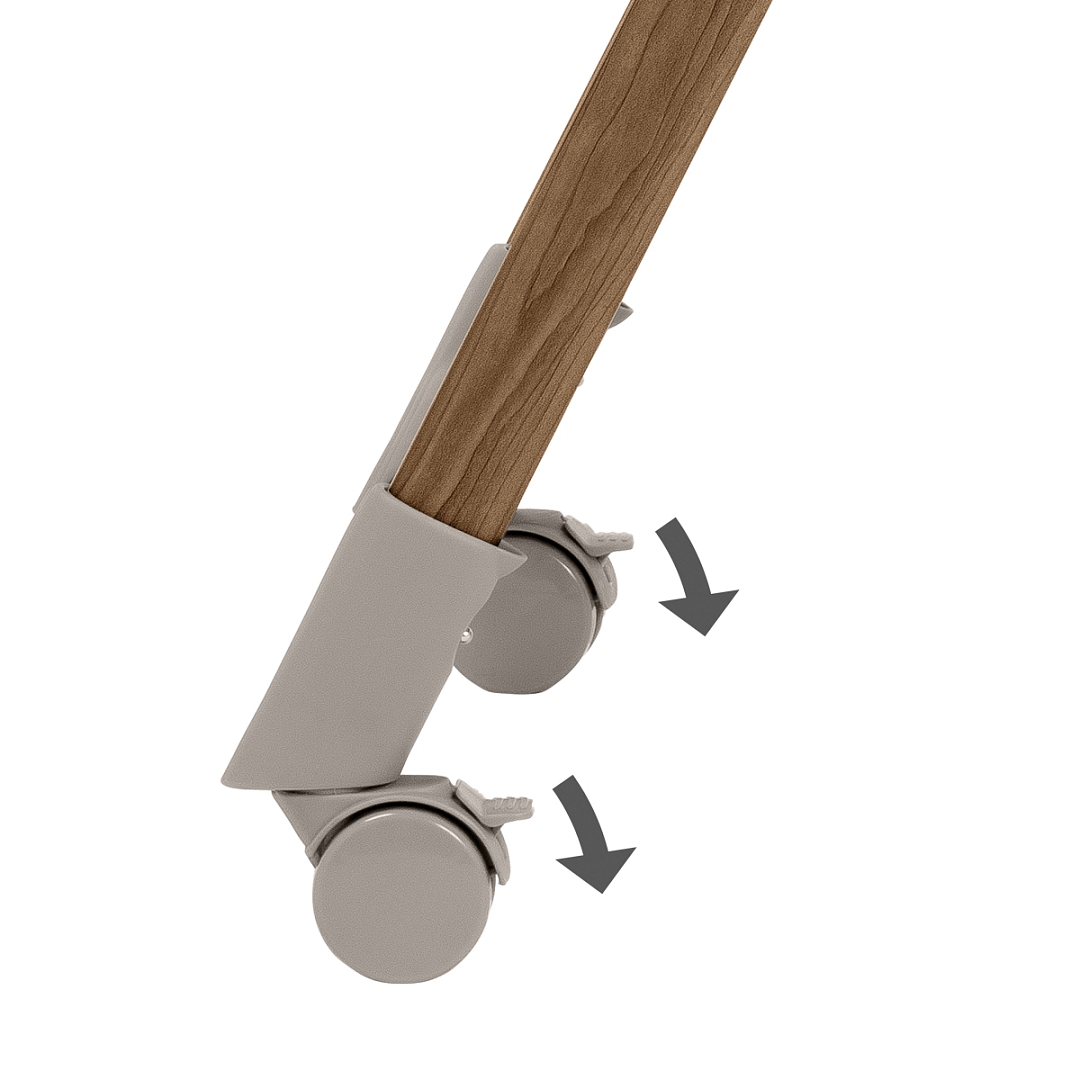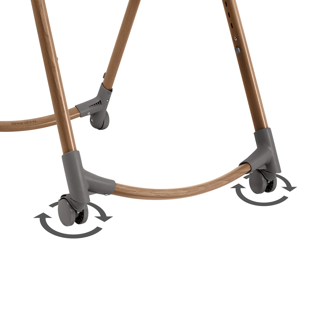 Благодаря передним поворотным колёсикам с тормозами, обеспечивающими дополнительную безопасность и устойчивость, Minla Plus легко найти подходящее место за столом.