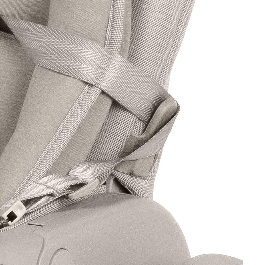 Вращающийся одним движением поднос обеспечивает удобный доступ при посадке ребёнка в кресло, а ремни безопасности можно крепить на специальные крючки, чтобы было удобно сажать ребенка.