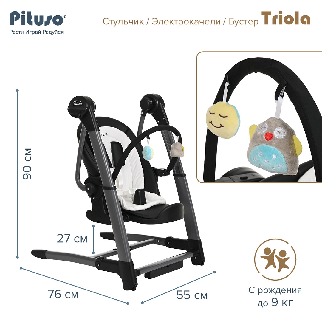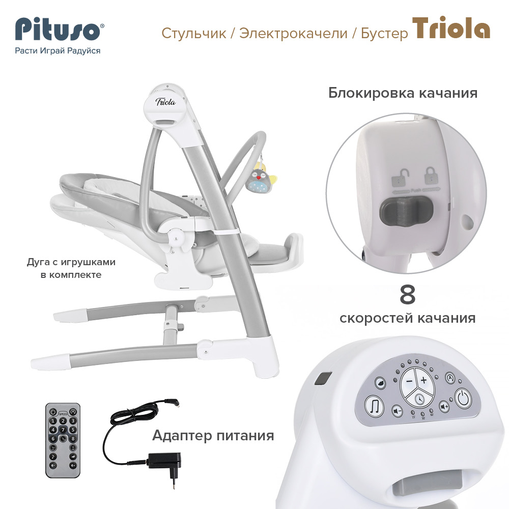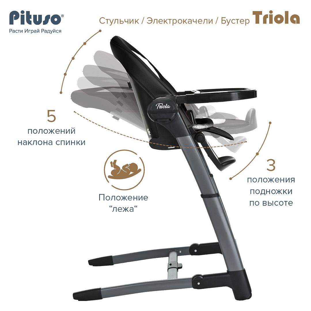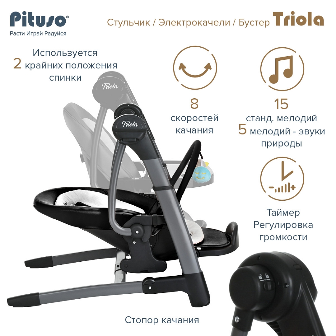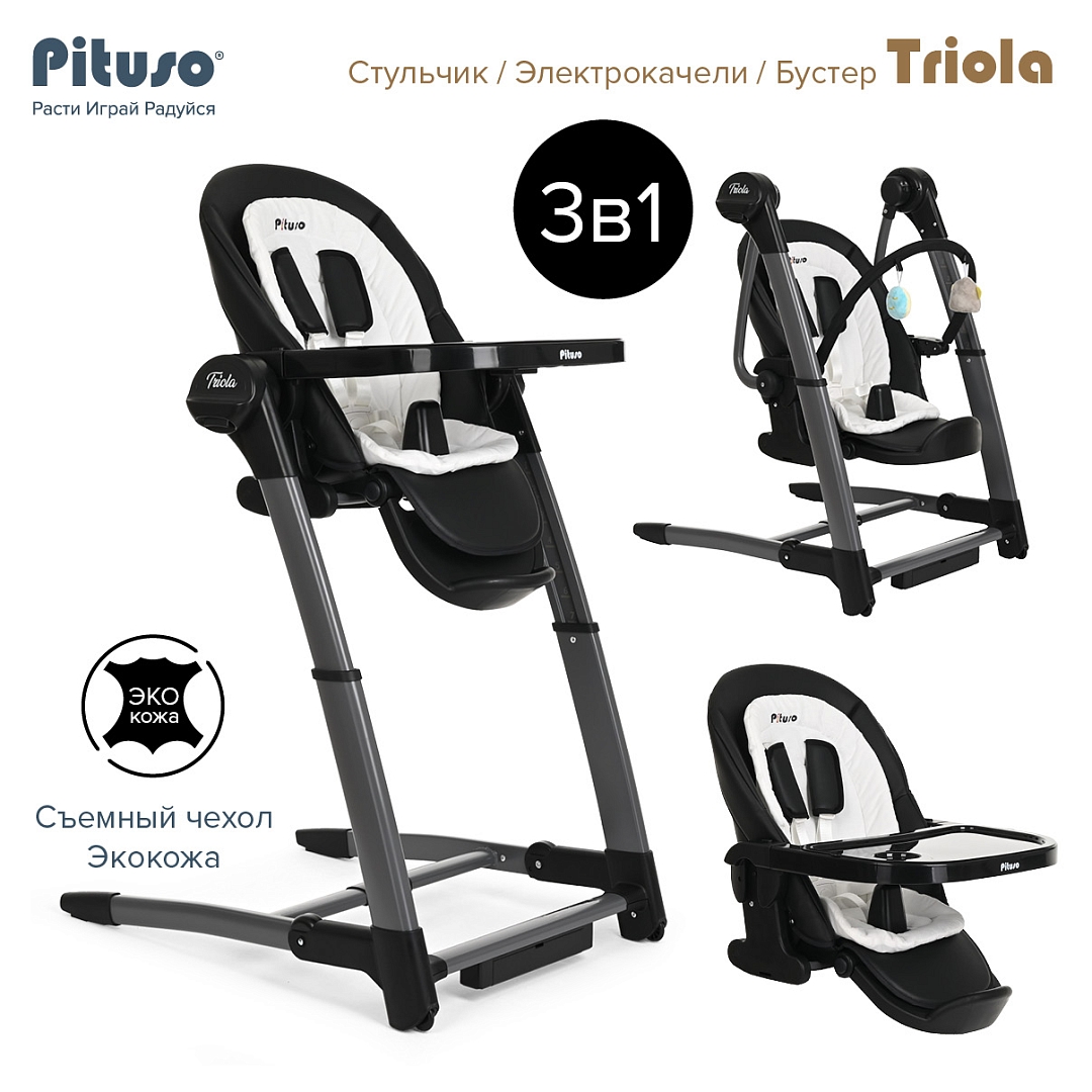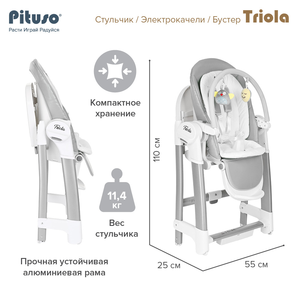 Стульчик для кормления Pituso Triola 3в1 электрокачели/стул/бустер (Темно-серый)