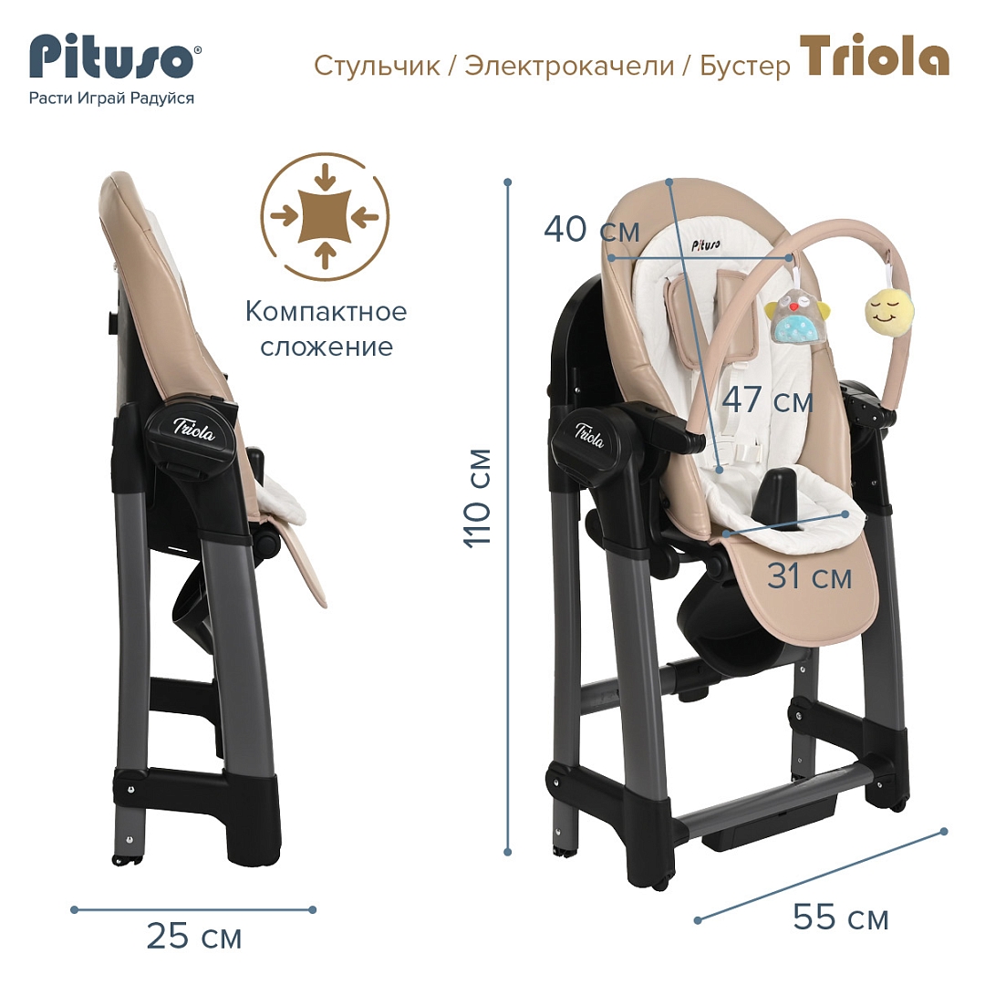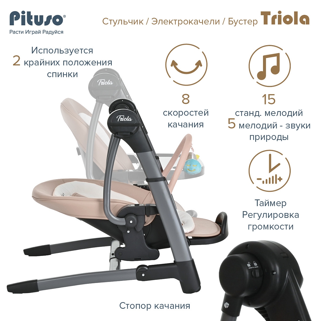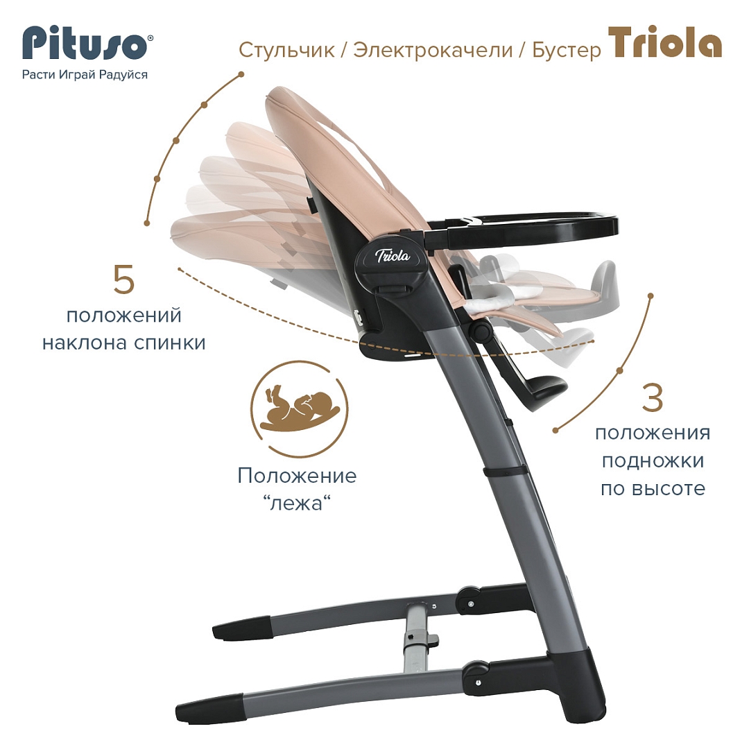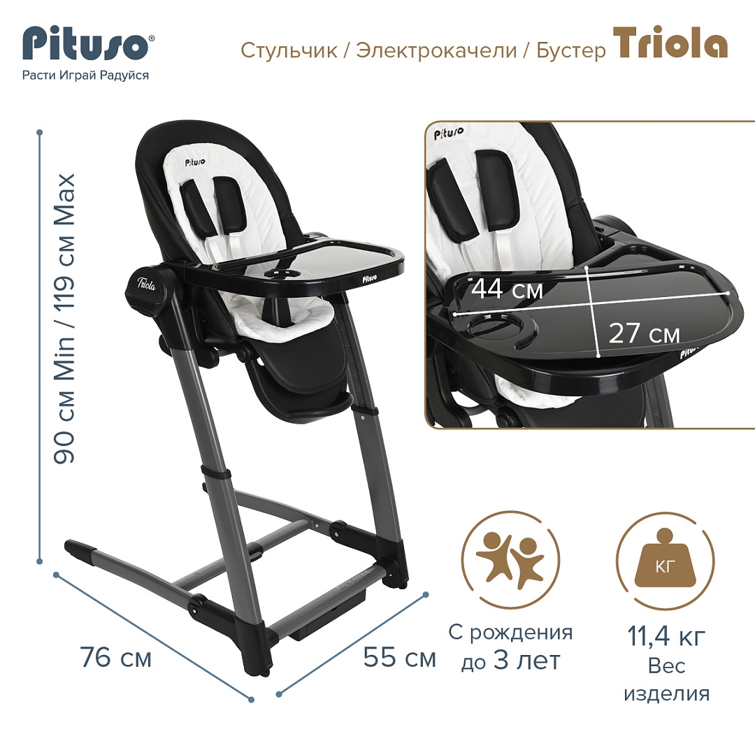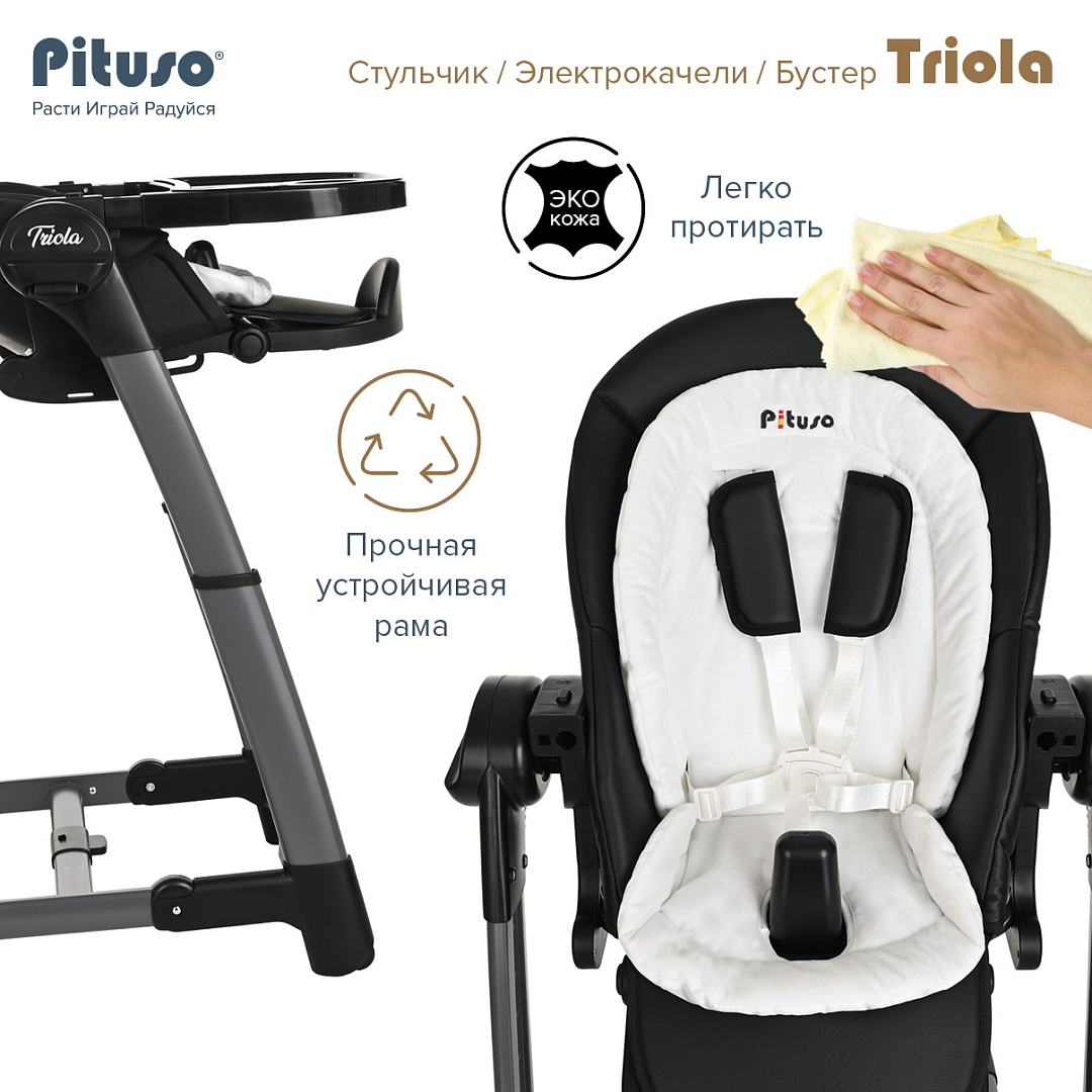 Стульчик для кормления Pituso Triola 3в1 электрокачели/стул/бустер (Темно-серый)