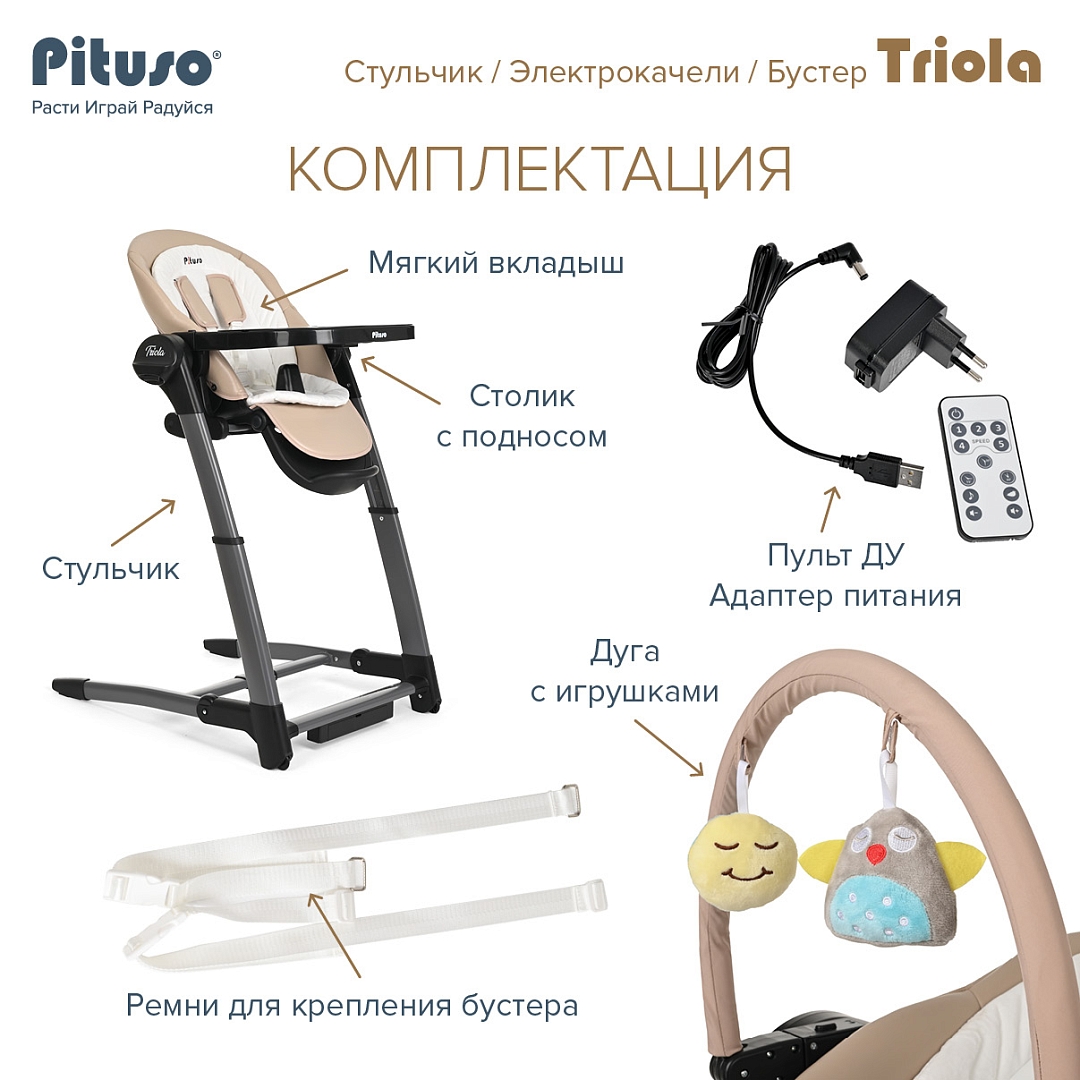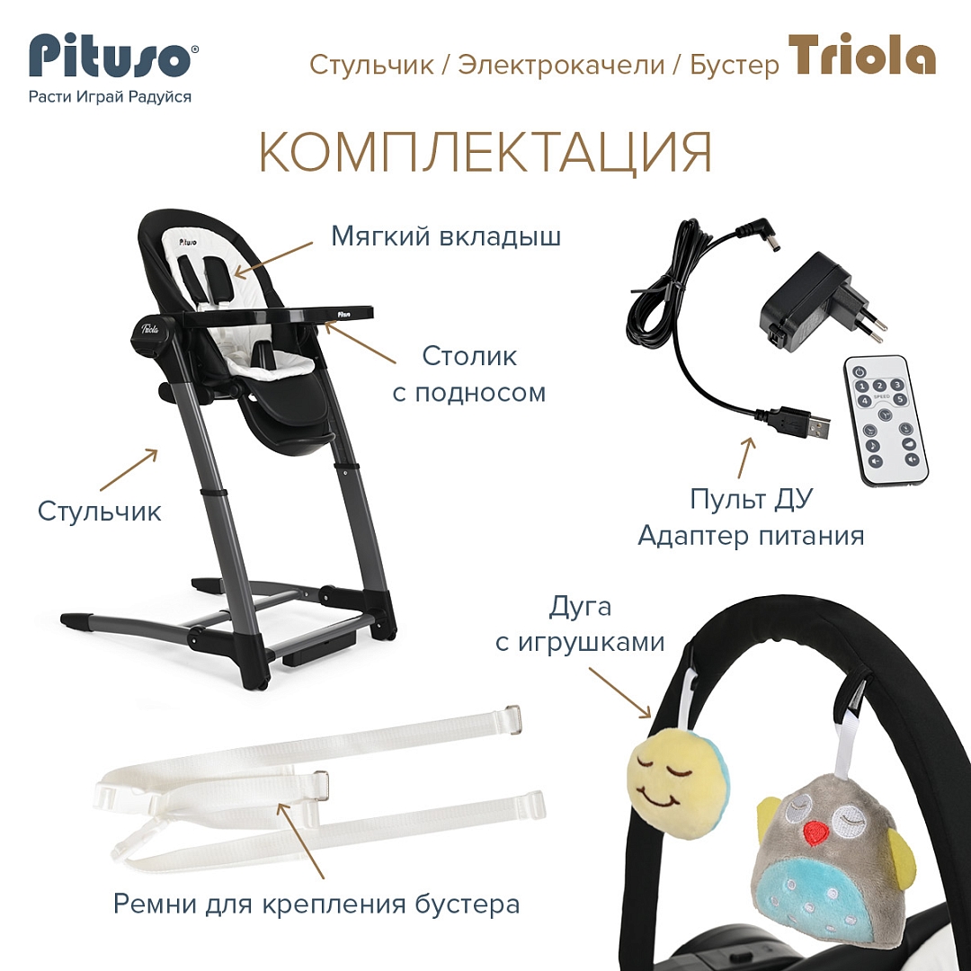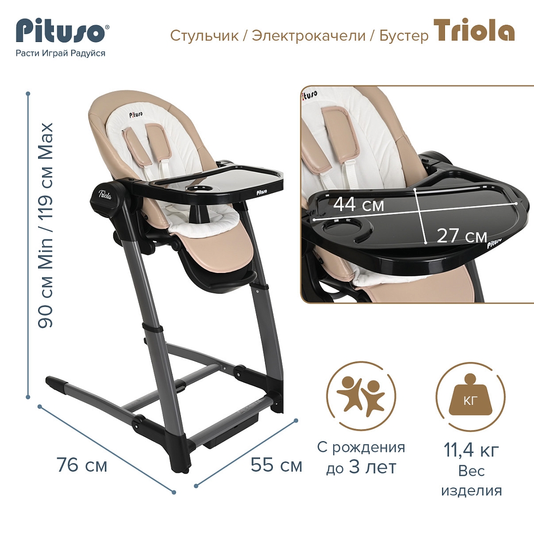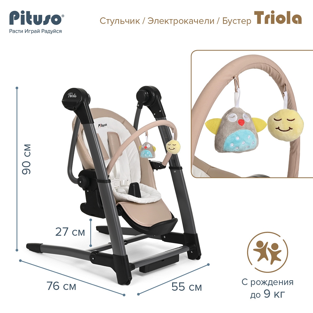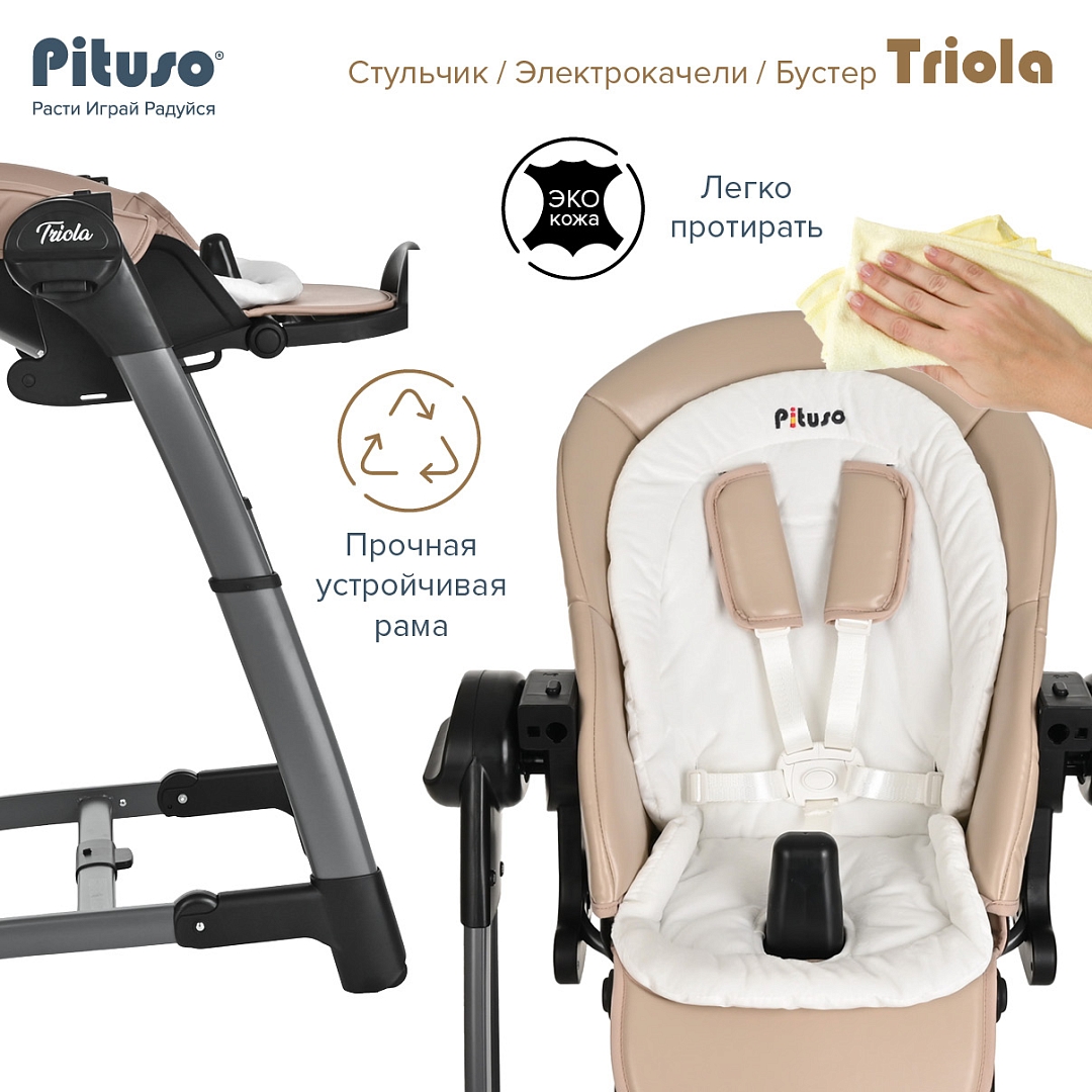 Стульчик для кормления Pituso Triola 3в1 электрокачели/стул/бустер (Темно-серый)