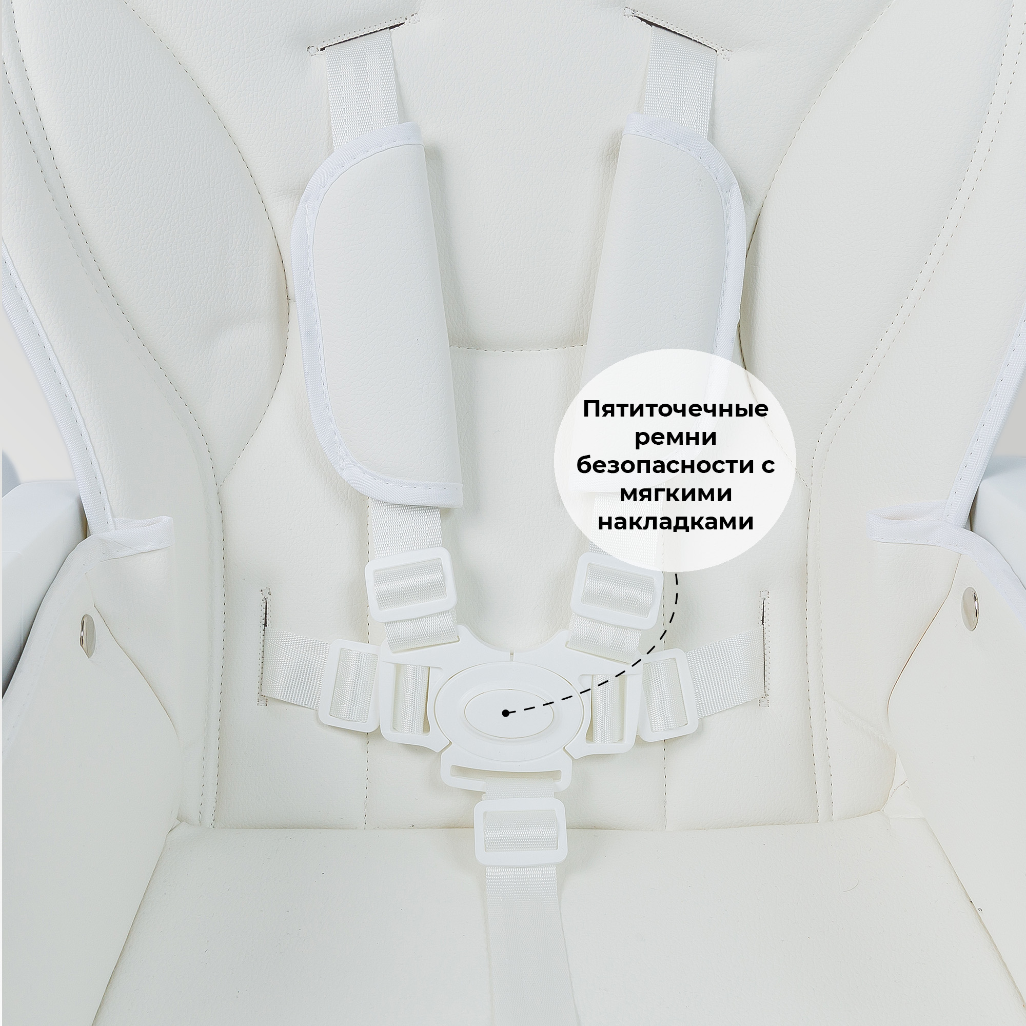 Безопасность всегда на первом месте. Ремни безопасности с мягкими накладками обеспечат защиту и комфорт вашему ребёнку, а поворотные колеса сделают перемещения по кухне или другим помещениям легкими и удобными.