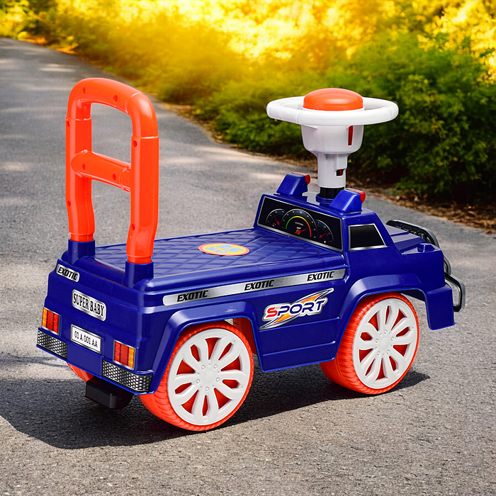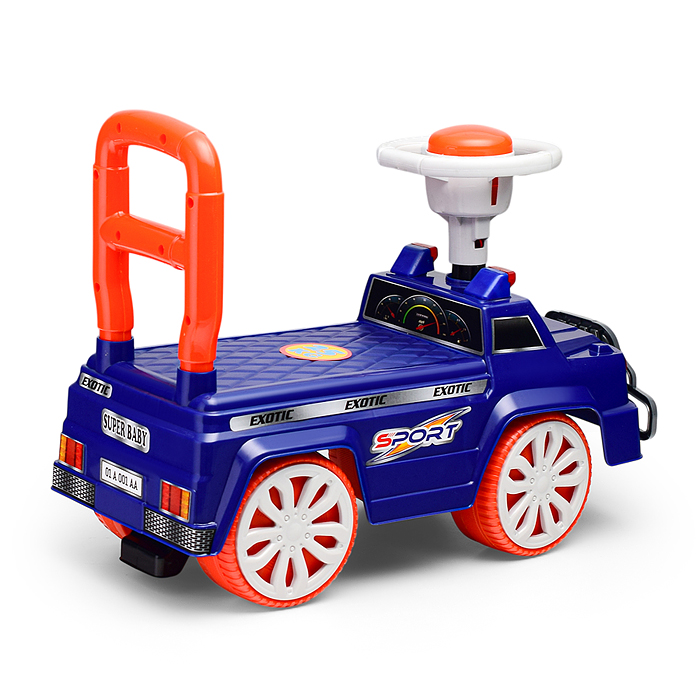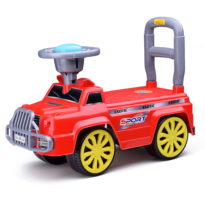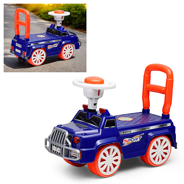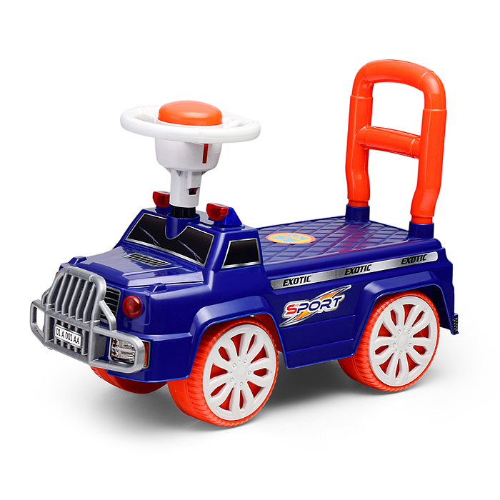 Функционал: Музыкальная каталка, толокар Материал: пластик Комплектация: толокар - 1 шт. Возраст ребенка: от 1,5 лет Каталка-толокар представляет собой пластиковую каталку в виде яркого автомобиля. Замечательная каталка станет отличным подарком для маленького автолюбителя. Отличная эргономика машинки отвечает всем требованиям безопасности. Она проста в управлении. Прочная пластиковая рама имеет небольшой вес. Широкие колеса гарантируют устойчивость. Такая каталка способствует развитию опорно двигательного аппарата ребенка, укреплению суставов и координации в пространстве. Ребенок будет прилагать усилия для передвижения, отталкиваться ногами и, тем самым, развивать моторику и внимание, приобретать навыки езды и управления с помощью каталки. Благодаря большим колесам на толокаре можно кататься не только дома, но и на улице. В комплекте: лист с наклейками для украшения толокара. Особенности: - Музыкальный - Светятся фары
