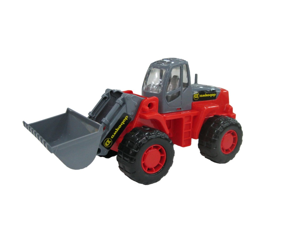 Трактор-погрузчик "Умелец" Полесье очень похож на настоящий трактор. У него большие устойчивые колеса и крепкий ковш для дорожных работ. С помощью такой игрушки ребенок сможет разгружать и загружать песок, кубики и другие мелкие предметы. Трактор изготовлен из высококачественного пластика и отличается хорошим качеством сборки.