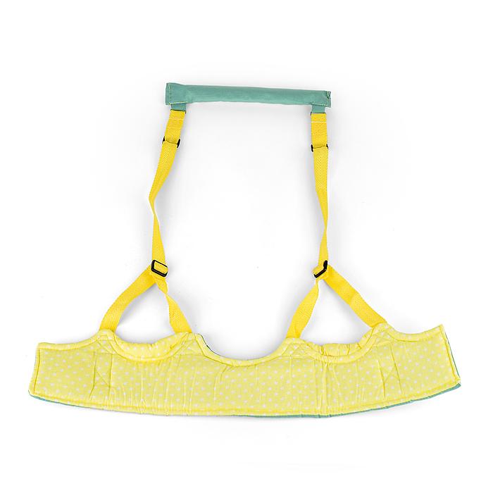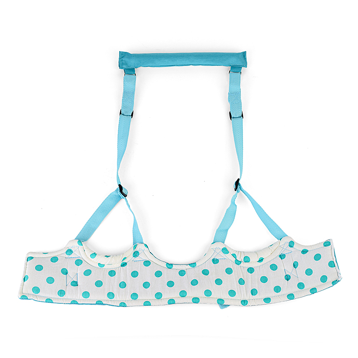 Ходунки крепятся на груди, в то время как взрослые удерживают ремень, направляя и охраняя движения деток